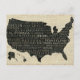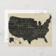 © Pela Studio / Wild Apple. A black and tan map of the USA. The continent is colored black with the names of the states written across it.