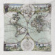 An antique map of the world (c.1702-7) by the cartographer Samuel Thornton. The hemispheres are shown along with the North and South Poles. © Bridgeman Images
