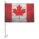 Show your Canadian pride with a distinctive look using this Canadian Flag Car Flag! This vehicle accessory features the iconic red and white Maple Leaf, overlaid with a unique brick wall texture for a grunge, urban, or rustic aesthetic. The flag is made with heavy-duty fabric for excellent durability and attaches easily to any car window in seconds.