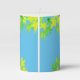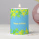 Featuring a backdrop of rich, light blue, this Pillar candle comes alive with a vibrant design of yellow green maple leaves. The contrast between the light blue background and the bright leaves creates a striking and stylish aesthetic.