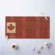 A digital recreation of a Maple (Acer spp.) leaf silhouette formed by carefully scraping off the reddish outer surface on the reverse side of birchbark to reveal the lighter, yellowish layer beneath. This is a traditional craft among Native Americans/First Nations across the northern United States and Canada. The image is reminiscent of Canada's national flag. Customize by adding your own text.