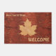 A digital recreation of a Maple (Acer spp.) leaf silhouette formed by carefully scraping off the reddish outer surface on the reverse side of birchbark to reveal the lighter, yellowish layer beneath. This is a traditional craft among Native Americans/First Nations across the northern United States and Canada. Customizable text reading, " WELCOME" also appears and there is an additional place for you to add your own text.