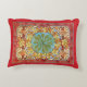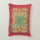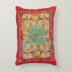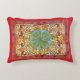 An accent pillow with an abstract pattern by the Czech artist Alphonse Mucha (1860-1939) from the Art Nouveau period, with various colored leaves in Autumn colors of red and orange.