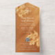 This autumnal wedding all-in-one invitation has a pumpkin color theme featuring subtle monochromatic maple leaves accenting a flowy gradient in shades of earthy pumpkin - by katz_d_zynes