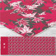 Red and white maple leaves on a charcoal gray (near black) background. (Pink background is also available).