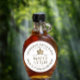 Add in your business name, address, volume of syrup and maple syrup grade. Elegant white label with gold text and a gold sugar maple leaf.