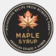 Editable homemade maple syrup canning label featuring a maple leaf illustration. Make your own canning labels for your favourite homemade recipes. Perfect for preserves, homemade gifts or as kitchen pantry organiser.