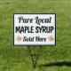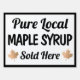 Bold typography yard sign reading "Pure Local Maple syrup sold here"