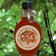 Pure Maple Syrup is written on a colorful autumn maple with little hearts falling from the tree like autumn leaves. Editable text reads “Made with Love in (your state). Add your business name, location and volume. Kraft background, white border.