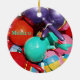 Round ceramic ornament with an image, on both sides, of an extreme realism watercolor painting of brightly hand-painted and festive maracas. See the entire Mexico Ornament collection in the HOME section.