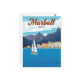 Capture the sun-drenched beauty of the Costa del Sol with this vintage-style postcard featuring Marbella, Spain. The artwork shows a beautiful sailboat gliding on the Mediterranean Sea, set against a backdrop of colorful buildings and the dramatic Sierra Blanca mountains. This stylized design evokes the golden age of travel and is perfect for a vacation souvenir, a note to a friend, or a piece of retro wall art.