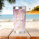 At the heart of the design lies your personalized monogram, displayed in a timeless serif font that exudes sophistication. Gracefully overlaying it, your name appears in flowing modern calligraphy, adding a romantic and personal touch to the sleek silhouette of the tumbler.