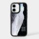 Marble Abstract Silver Blue Glitter Monogram Otterbox iPhone Case