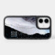 This pretty phone case features a blue, gray, and silver faux glitter abstract agate like pattern on the left side, and your monogram in matching silver against a black background on the right. An overlay of tiny silver and blue confetti adds interest and sparkle. Unique and elegant!