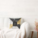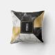 Modern monogrammed accent throw pillow done in a geometric pattern of gold tone foil, white marble and black marble. A black and gold square, in the middle of the pillow has a white single letter monogram ready to personalize. Lovely home decor and makes a great gift idea.