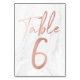 Add a stylish touch to your wedding reception with custom table cards. The wedding table cards feature a white marble background and a faux rose gold trendy script font. Additional numbers can be found in the collection below.
