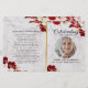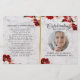 Customize this modern, elegant funeral program with your own photo and text to create a special tribute to your Beloved. An 'In Loving Memory' program featuring a marble and burgundy blush flowers with gold accent memorial program. On the front cover is a photo of your loved one, their name, dates, the memorial venue, and the date of the event. On the inside is an obituary and order of service, and on the back is a thank you note and the venue of the