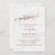 This suite's distinction is due to the modern script font used for accent phrases, embellished with a faux-copper effect. If you're in the position of needing to inform your wedding guests that you've had to change your big date, here is an elegant option. In this piece, the pretty font was used to create a simple graphic depicting the word "postponed"; the same font was used to render "love" that was placed on the reverse side. The background was covered in a subtle gray and white marble image. Use the template fields to add your personal details and make this unique, modern design your own. // 57 //