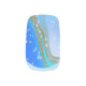 Introducing Teal Blue Gold White Marble Effect Reverse French Minx Nail Art! Embrace elegance and sophistication with this captivating design. The main colors, teal, blue, white and gold, create stunning swirling lines to make a beautiful marble effect. Delicate gold accents add a touch of glamour, elevating your style to new heights. A modern twist on the classic French nail, this design features a reverse French tip in light blue with rainbow flecks, adding a pop of intrigue.