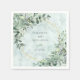 Perfect for nature themed weddings, these elegant watercolor botanical paper napkins feature bouquets of eucalyptus greenery decorating the gold geometric frame around the names of the bride and groom and the wedding date. The background is an elegant marble texture.