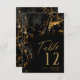An abstract background reminiscent of marble in shades from charcoal gray to black veined with glittering gold is the backdrop for elegant script text and modern design layouts in the pieces of this beautiful wedding suite. The wedding table number card shown here features the above plus optional flowing script text of Table' and a template to add the bride and groom's names and wedding date. Search ID644 to see all the coordinating pieces in this set.
