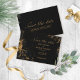 An abstract background reminiscent of marble in shades from charcoal gray to black veined with glittering gold is the backdrop for elegant script text and modern design layouts in the pieces of this beautiful wedding suite. The Save the Date card shown here features the above plus optional flowing script text and a template to add your pertinent wedding details front and back. Search ID644 to see all the coordinating pieces in this set.