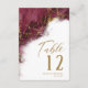 An abstract background reminiscent of marble in shades of burgundy veined with glittering gold is the backdrop for elegant script text and modern design layouts in the pieces of this beautiful wedding suite. The wedding table number card shown here features the above plus optional flowing script text of Table' and a template to add the bride and groom's names and wedding date. Search ID644 to see all the coordinating pieces in this set.