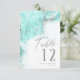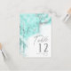 An abstract background reminiscent of marble in shades of soft teal through deep aqua blue and veined with glittering silver is the backdrop for elegant script text and modern design layouts in the pieces of this beautiful wedding suite. The wedding table number card shown here features the above plus optional flowing script text of Table' and a template to add the bride and groom's names and wedding date. Search ID644 to see all the coordinating pieces in this set.