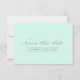 An abstract background reminiscent of marble in shades of soft teal through deep aqua blue and veined with glittering silver is the backdrop for elegant script text and modern design layouts in the pieces of this beautiful wedding suite. The Save the Date card shown here features the above plus optional flowing script text and a template to add your pertinent wedding details front and back. Search ID644 to see all the coordinating pieces in this set.
