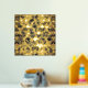 A dark marble texture coloured in deep blacks and greys with gold veins is combined with a faux gold foil textured geometric pattern.