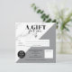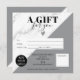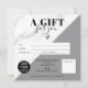 Modern chic black and white marble pattern and editable gray color block simple square gift certificate, add your logo, with a heart. Perfect birthday or Christmas gift certificate voucher.