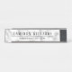 Personalized desk name plate featuring your name and title on a printed marble look background texture.