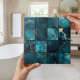 This luxurious ceramic tile design showcases rich teal marble veined with shimmering gold for an elegant, high-end look. The pattern captures the serene depth of ocean hues with a touch of metallic brilliance. Ideal for kitchen backsplashes, bathroom walls, fireplace surrounds, or accent installations, these tiles bring a sense of refined sophistication to any interior. This design is part of a coordinated trio that can be mixed and matched for a rich, natural-looking variation across multiple tiles, perfect for coastal modern, contemporary, or upscale classic décor. Search ID1186a, b and c to see each of the variations. Note: design contains generative content.