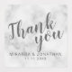 featuring title "Thank You" in grey modern script font with name and date in modern sans serif font on white marble background.