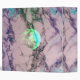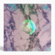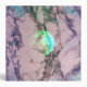 A lime green and turquoise blue full moon graphic set in a dusty-rose gray marbled sky.