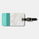 Marble background with gold accents and teal ombre stripes on the bottom with a custom monogram in a sans serif font. You can choose from two different colors in our store. Back side holds your information in a sans serif font on a white background.