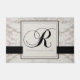 Marble Look Pattern with Black Monogram R Elegant Door Mat with custom text The Robertson Family