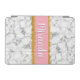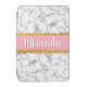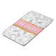 A stylish, chic grey and white marble pattern background with a pink border trimmed in faux gold glitter. The design sports a customizable name template.