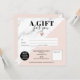 Modern chic black and white marble pattern and editable pastel blush pink color block simple square gift certificate, add your logo, with a rose gold heart. Perfect birthday or Christmas gift certificate voucher.