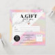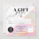 Modern chic black and white marble pattern and rainbow holographic color block simple square gift certificate, add your logo, with a rose gold heart. Perfect birthday or Christmas gift certificate voucher.