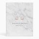 Keep track of your appointments, customer data and more with this chic binder for makeup artists or aestheticians. Design features two lines of custom text in charcoal gray lettering on a luxe white marble background adorned with a pair of lush lashes and brows in faux rose gold foil. Add additional custom text to the solid dark grey spine. Please note: this binder is a mini size.