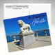 This Florida Travel Postcard features the photo image of one of two gallant white marble lions that stand guard over the entrance to the Bridge of Lions which connects downtown "Old City" Saint Augustine with Anastasia Island. The large carrera marble lions are named “Firm” and “Faithful,” and were originally commissioned by Italian sculptor F. Romanelli in 1927, and later restored. The background features a stunning azure blue sky and numerous sailboats and watercraft anchored in Matanzas Bay, which is part of the Intracoastal Waterway. The Postcard is available in matte or semi-gloss finish, and may be personalized at no additional cost. Photography by Glenda Motsavage, a Florida-based travel writer and author.