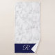 Marble Style Navy Blue Monogram Initial Bathroom Bath Towel Set