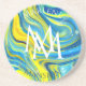 Customizable Monogram Initial and Name. This is a beautiful liquid marble texture with big oil bubbles and twirls. Harmonic blue and yellow tones coloured abstraction.