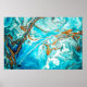 Marble texture. Eastern technique. Contemporary art. Golden and turquoise mixed acrylic paints.