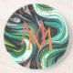 I'm not sure how much moisture these will soak up, haven't had a chance to try them out, but they look good and I like the cork backing. The printing is fine ~ and really looks cool with an artisan's hand made "Hurricane Martini" glass sitting on top of my painting (on the coaster) in my studio.