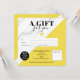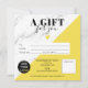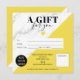 Modern chic black and white marble pattern and editable yellow color block simple square gift certificate, add your logo, with a heart. Perfect birthday or Christmas gift certificate voucher.