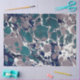 This marbled paper design features the colors blue, green, white, and taupe