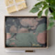 This abstract image features a vintage pink, green, and yellow marble design.