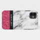 Modern white and black marble stone and red glitter. Custom monogram on black stripe